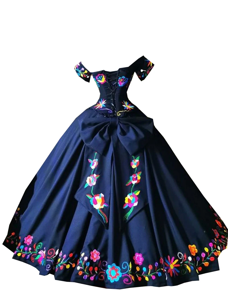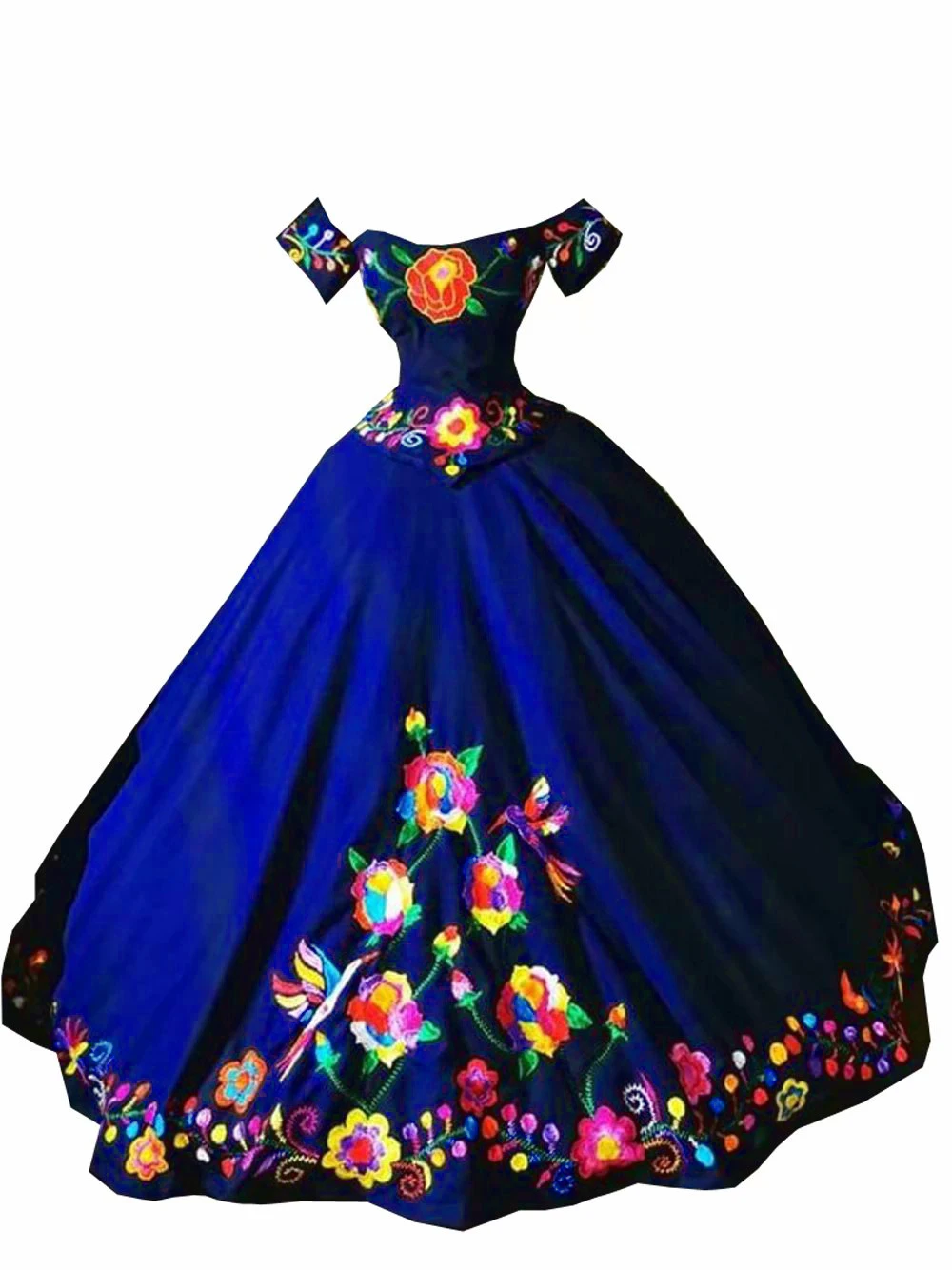 Сдержанное бальное платье 2022, темно-синее цветное бальное платье с цветочной вышивкой, атласное платье для девушек 15 лет, платья для вечеринки, милые платья 16