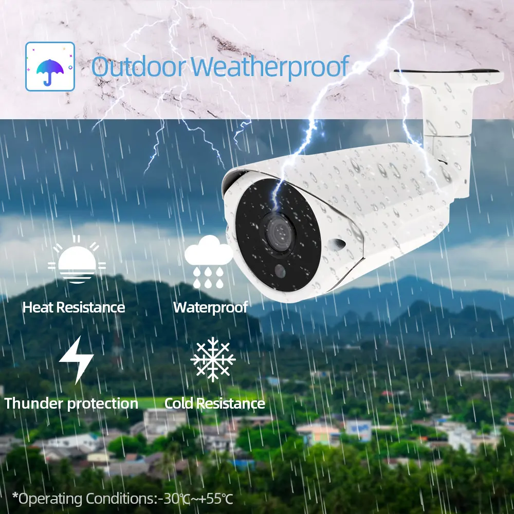 Используйте их в качестве наружных камер или крытых камер, так как они построены жестко, выдерживает любую погоду: дождь, снег, пыль и жаркие дни.С защитой от атмосферных воздействий IP66 и кабелями, просвечивающимися через подставку для защиты, гарантируем, что вы сможете ответить на их производительность, день в день.Наша камера имеет сверхпрочный металлический корпус, профессиональный IP66, устойчивый к атмосферным воздействиям, обеспечивая стабильную производительность как внутри, так и снаружи.