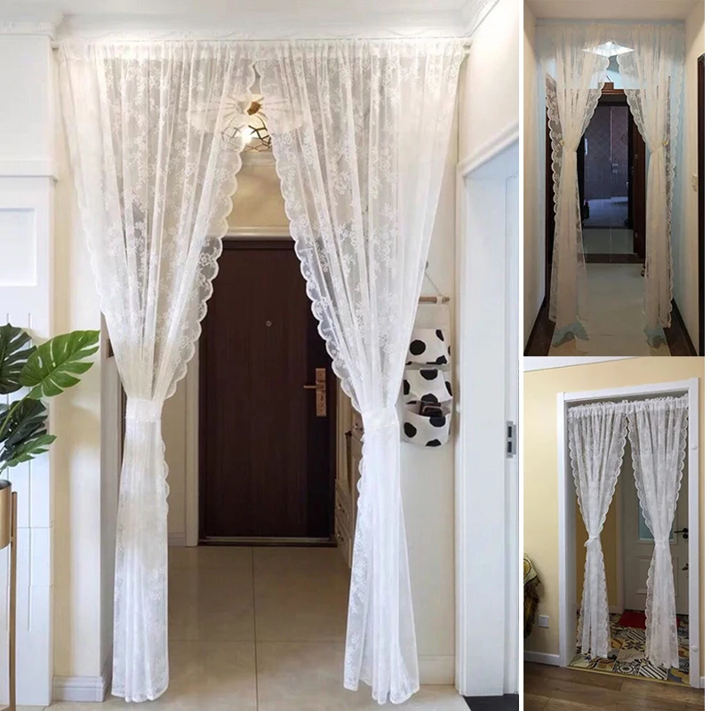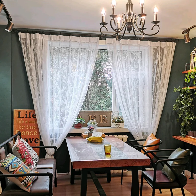 шторы Белые кружевные прозрачные шторы, тюлевые драпировки принцессы для гостиной, спальни, эркера, двери, кухни, Короткие шторы, драпировка