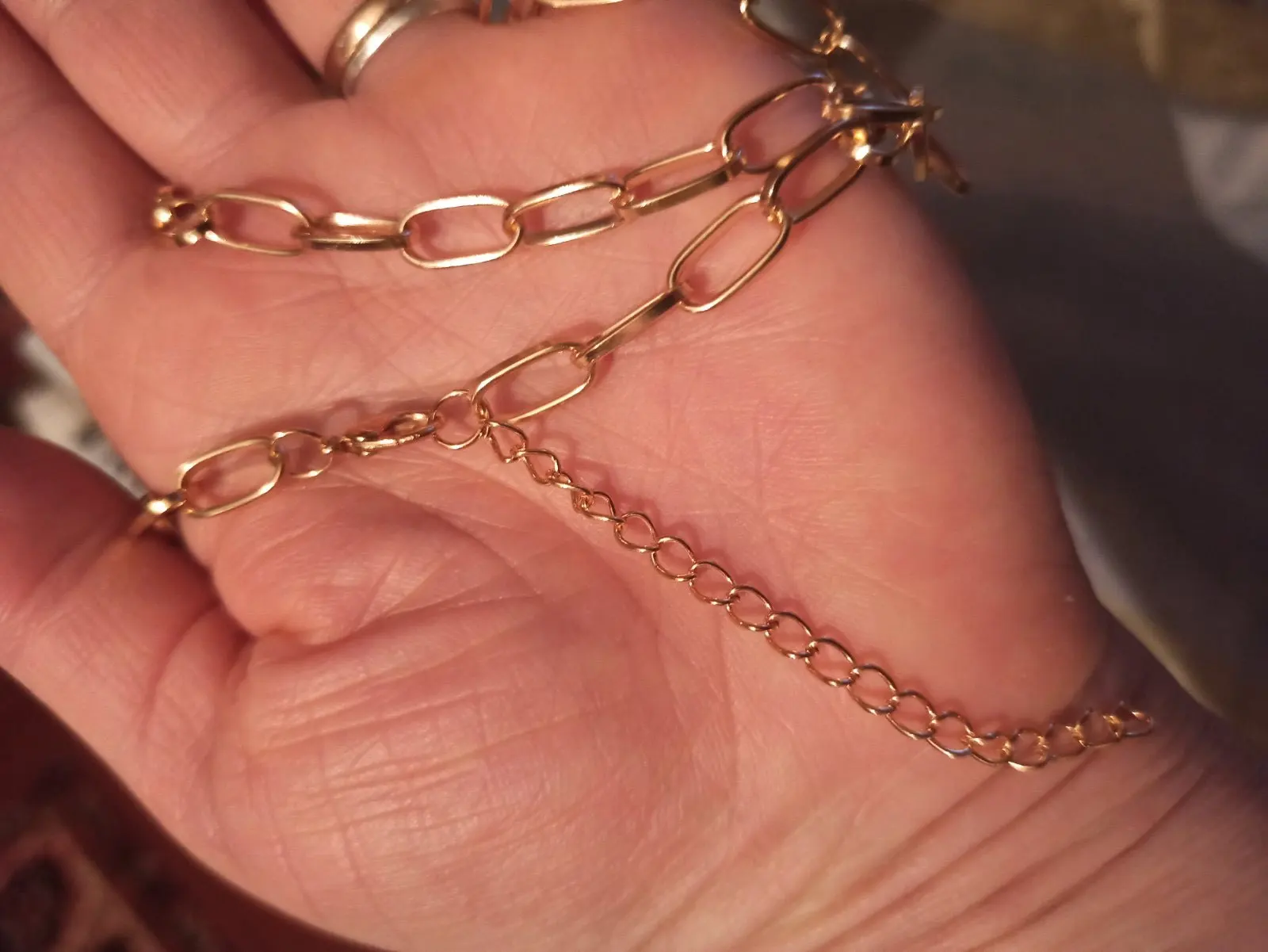 Заметила, что мне пришли только 2 цепочки, хотя на фото их 3. Но качество мне понравилось. Сделано из металла, а не из пластика .
