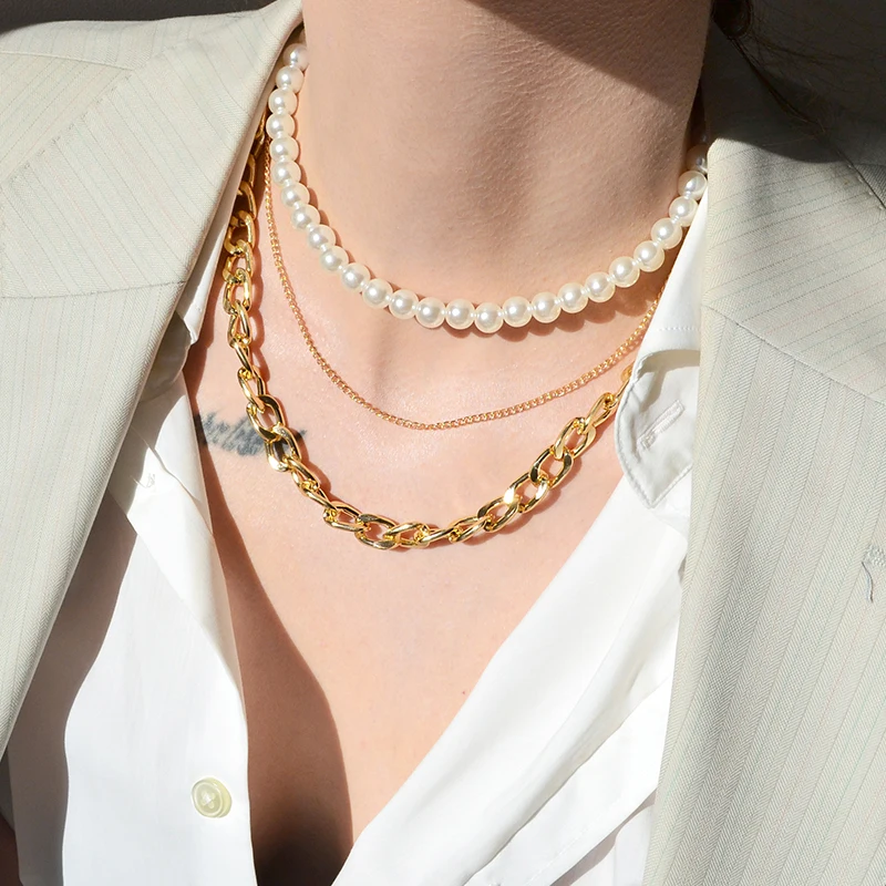 Цепочка-чокер Женская многослойная, золотая, 17 км, 2021