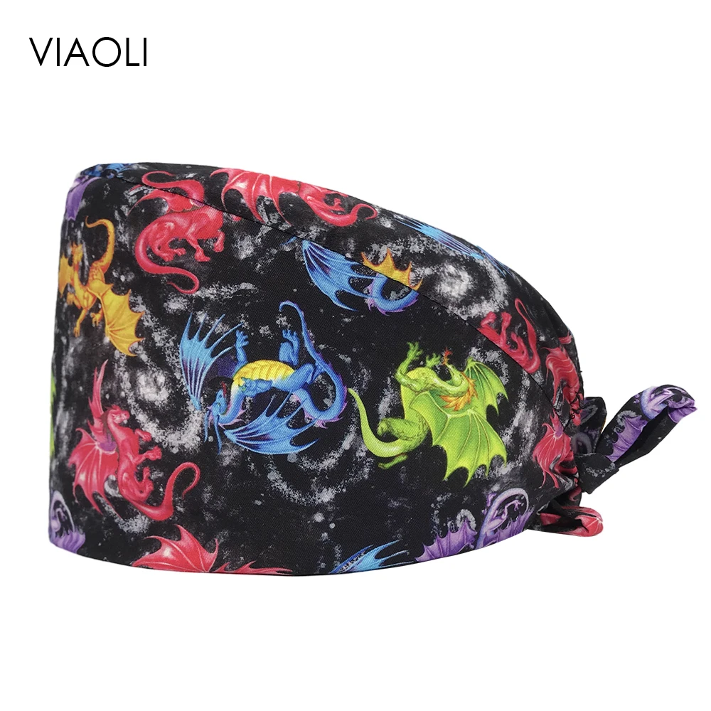 Хирургическая шапочка VIAOLI из 100% хлопка с принтом, эластичная ш...