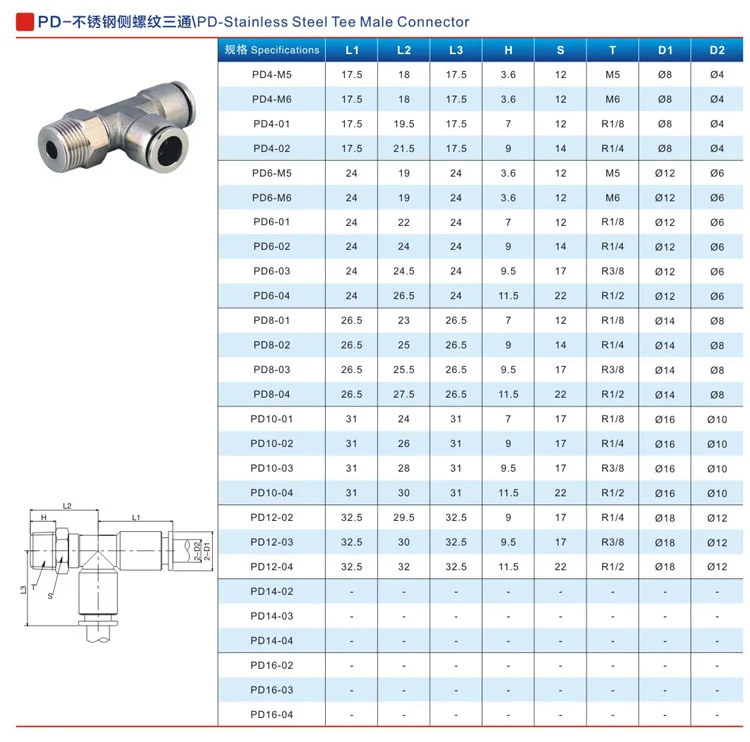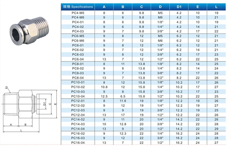 M5 M6 18 "14" 38 "12" 304 "BSPT Male пневматический из нержавеющей ...