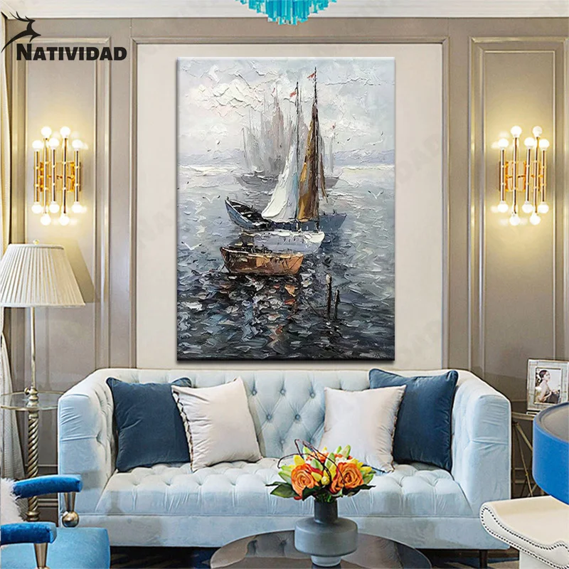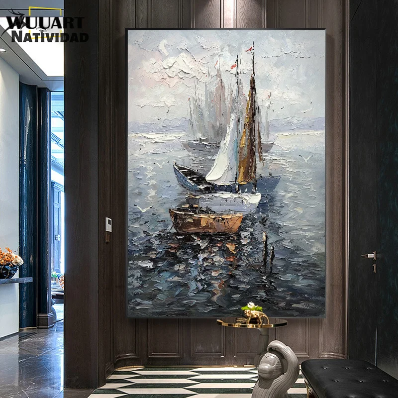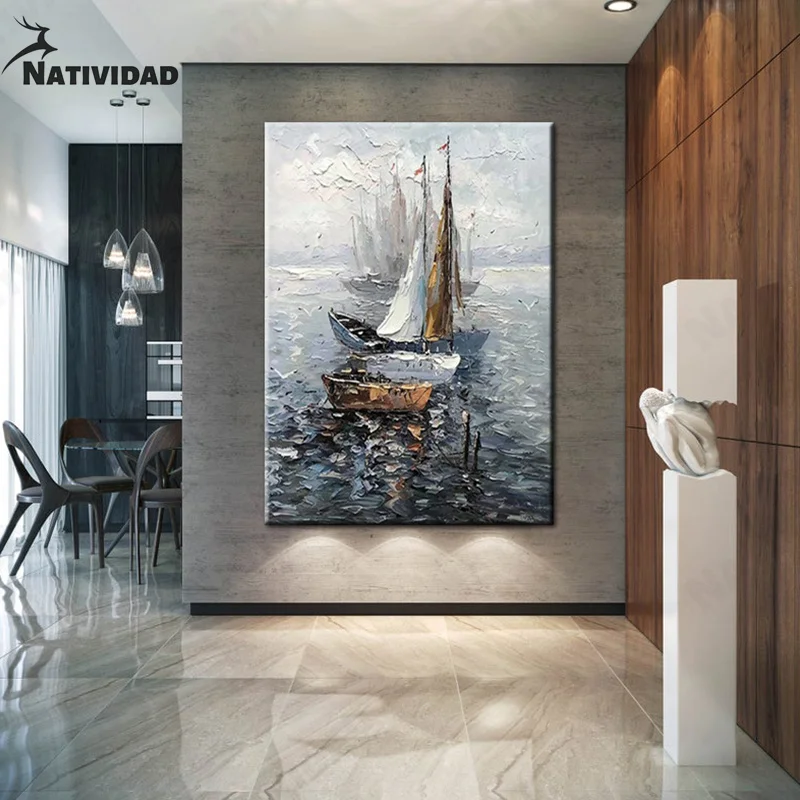 Абстрактная картина маслом с парусником, настенный плакат, украшение для дома и офиса, морской пейзаж, живопись