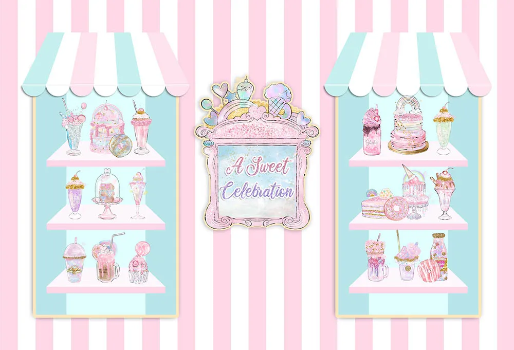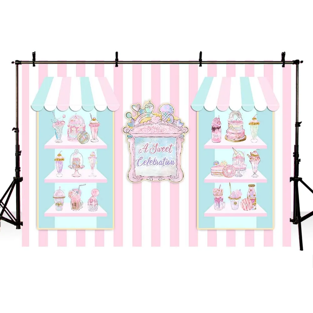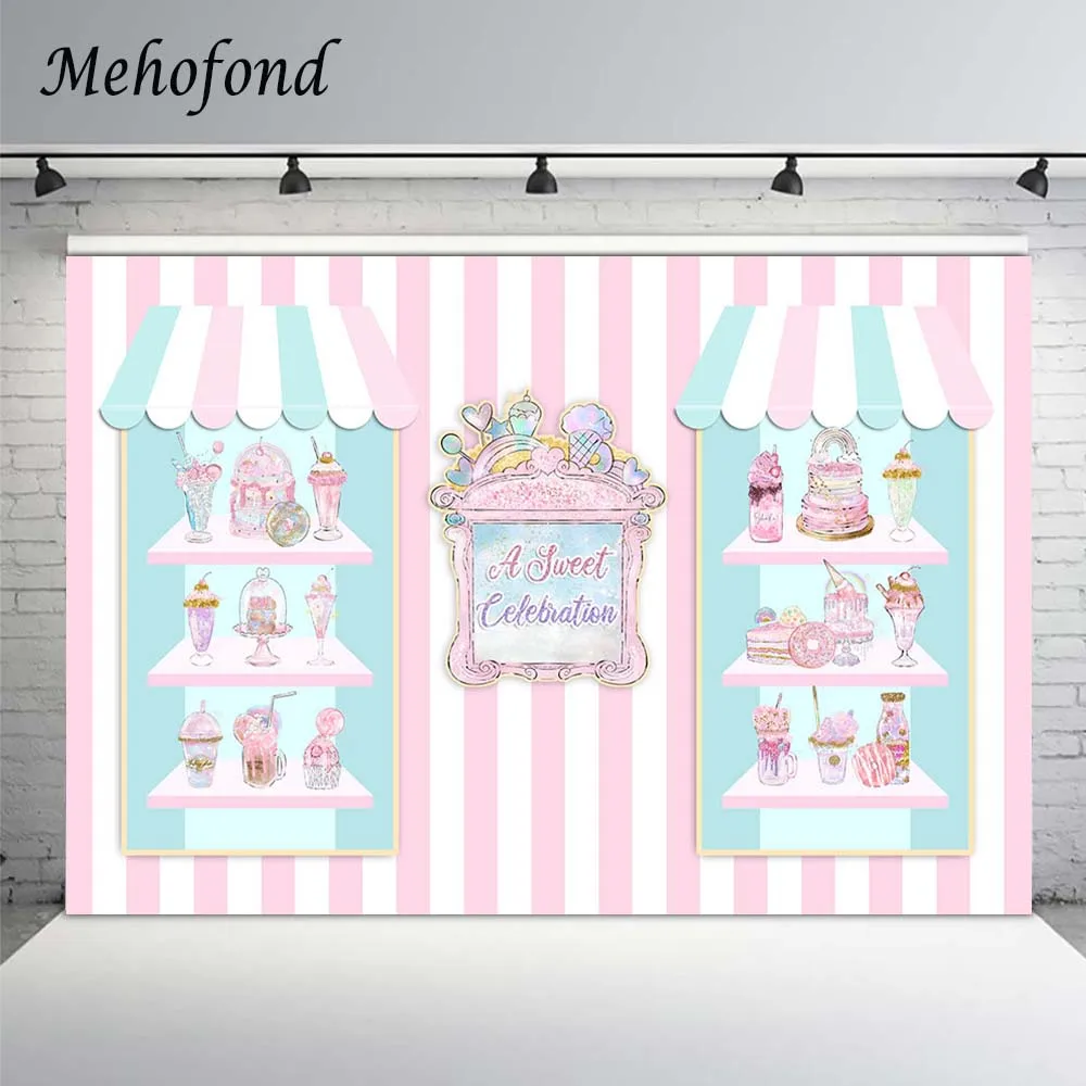 Фоны Mehofond для празднования вечерние, мороженое, торт, розовая полоса, десерт, магазин, детский день рождения, Декор, фон для фотосъемки