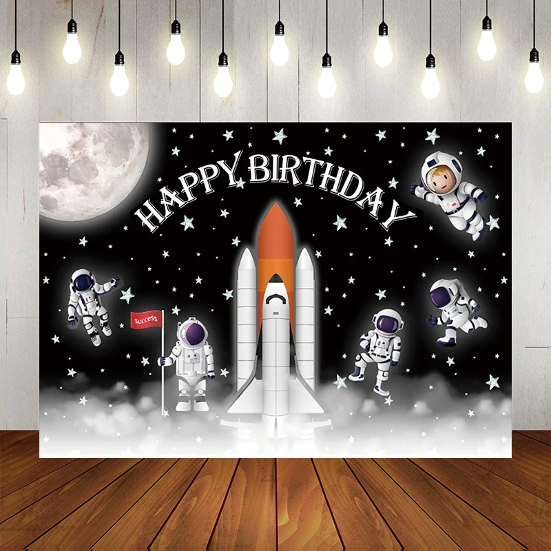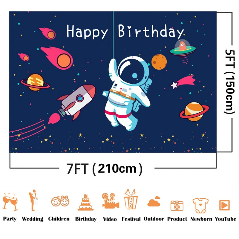 Виниловый фон для вечерние съемки детей с изображением космонавта, детского космонавта, летающей тарелки