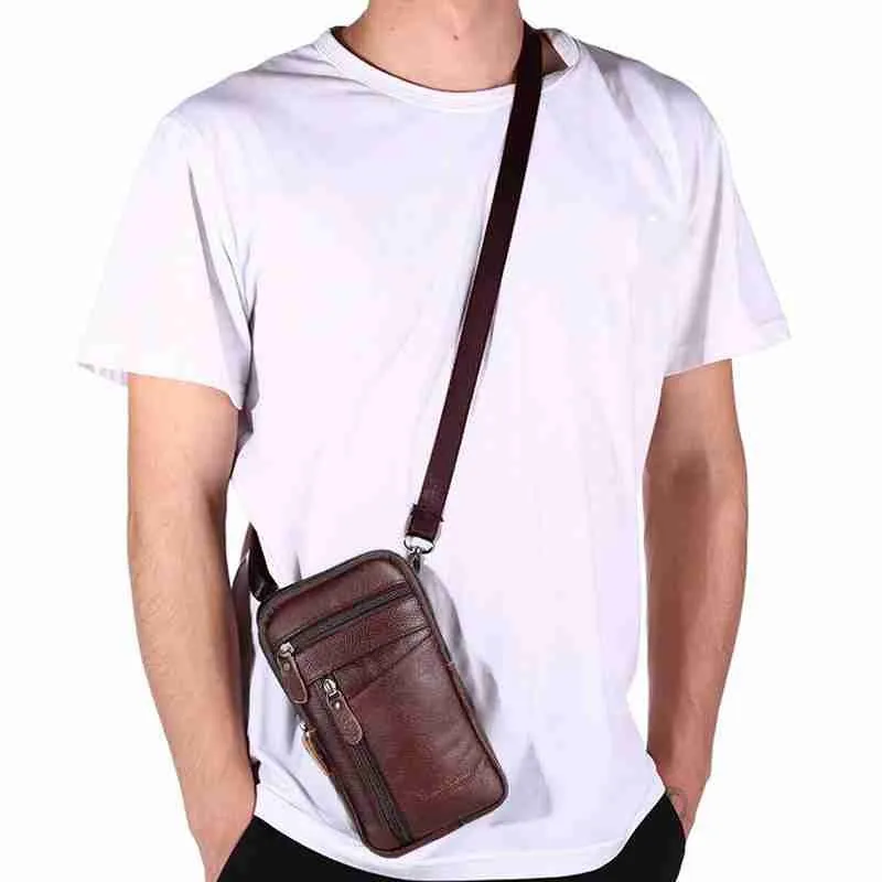 Мужская кожаная сумка для телефона, многофункциональная нагрудная сумка через плечо, рюкзак для смены наличных денег, держатель для паспорта, мужская дорожная поясная сумка