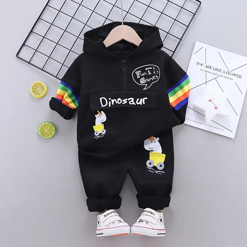 Хлопковая толстовка с динозавром для маленьких мальчиков, Спортивная толстовка с капюшоном, комплект одежды для малышей, детский спортивный костюм, одежда для весны и осени