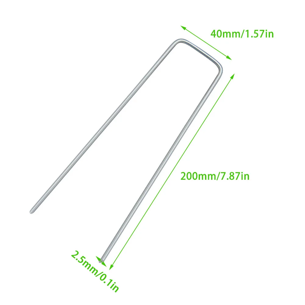 1. Название: u-образные ногти для газонов2. Размеры: около 2,5*40*200 мм/0,10*1,57*7,87 дюйм (ов)3. Материал: углеродистая сталь4. Поверхность: оцинкованная5. Горячее погружение, подходит для теплиц, сеток от насекомых, теневых сеток и заземления тканевой фиксации