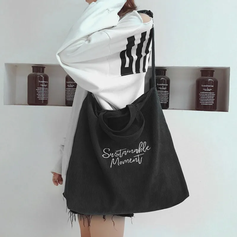 Большой Ёмкость вельвет плечо сумки-шопперы для женщин 2021 Kpop сумки женские модные покупателей Холст студенческая сумка