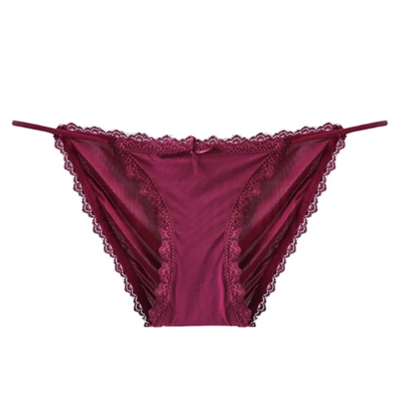 Однотонное нижнее белье с низкой талией, женские трусики, сексуальные кружевные трусы, бикини, женские бесшовные стринги, шелковистые, размер M/L/XL