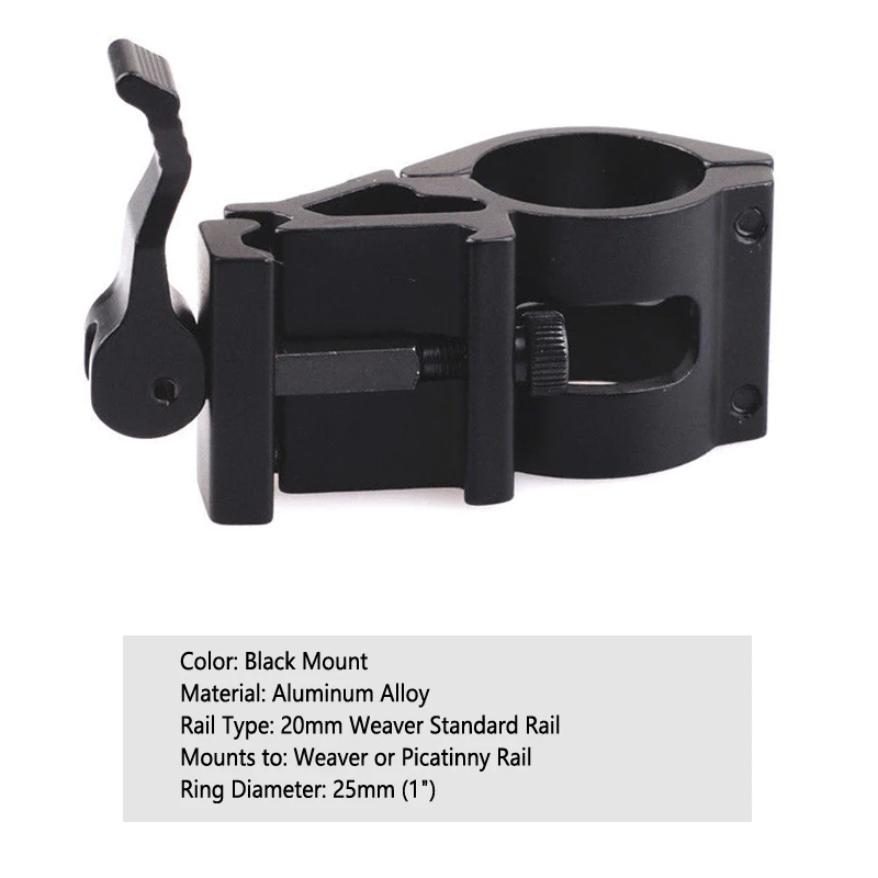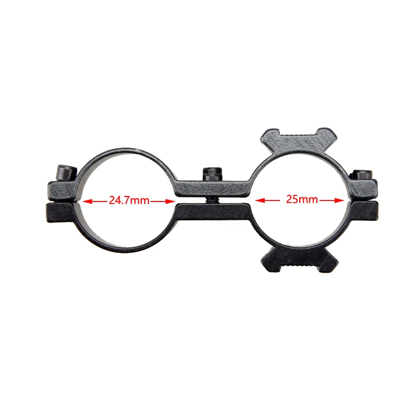 Диаметр кольца: 25 мм и 24,7 ммМатериал корпуса: алюминиевый сплавЦвет: матовый черныйВес: 40 гАксессуары: 1 х мини шестигранный гаечный ключОсобенности:Подходит для прицела, красных точек, фонарика, лазерного крепления.Отлично подходит для крепления на винтовку с дополнительными аксессуарами.Матовая черная отделка выглядит так круто на любом пистолете/ружье.Полностью регулируется с помощью гаек и винтов.