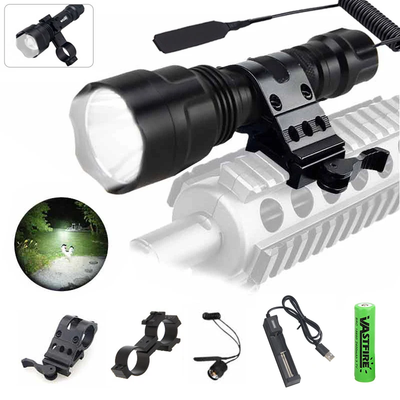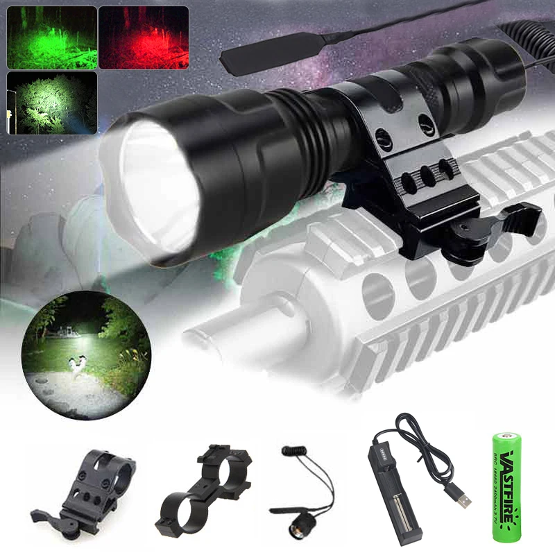 C8 белыйзеленыйкрасный тактический фонарь 5000lm CREE XM-L T6 светодиодный фонарик охотничий фонарь 18650 Батарея крепление винтовка пистолет Rail открытый Фонари
