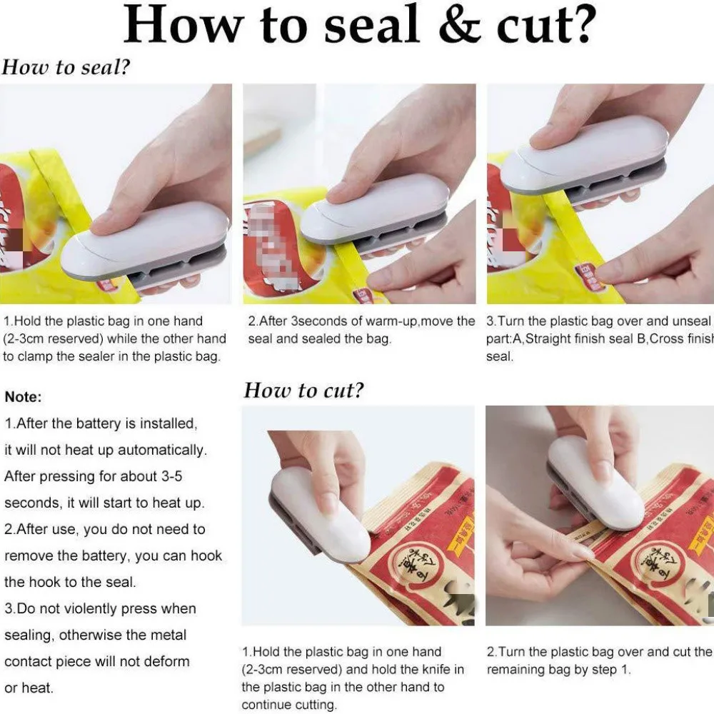 Мини-герметик для пакетов, 2 в 1, ручной портативный герметик для пакетов, для хранения продуктов