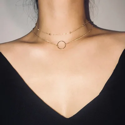 Ожерелье Двухслойное круглое женское, модный современный чокер золотистого цвета, колье-чокер, бижутерия для женщин, 2021