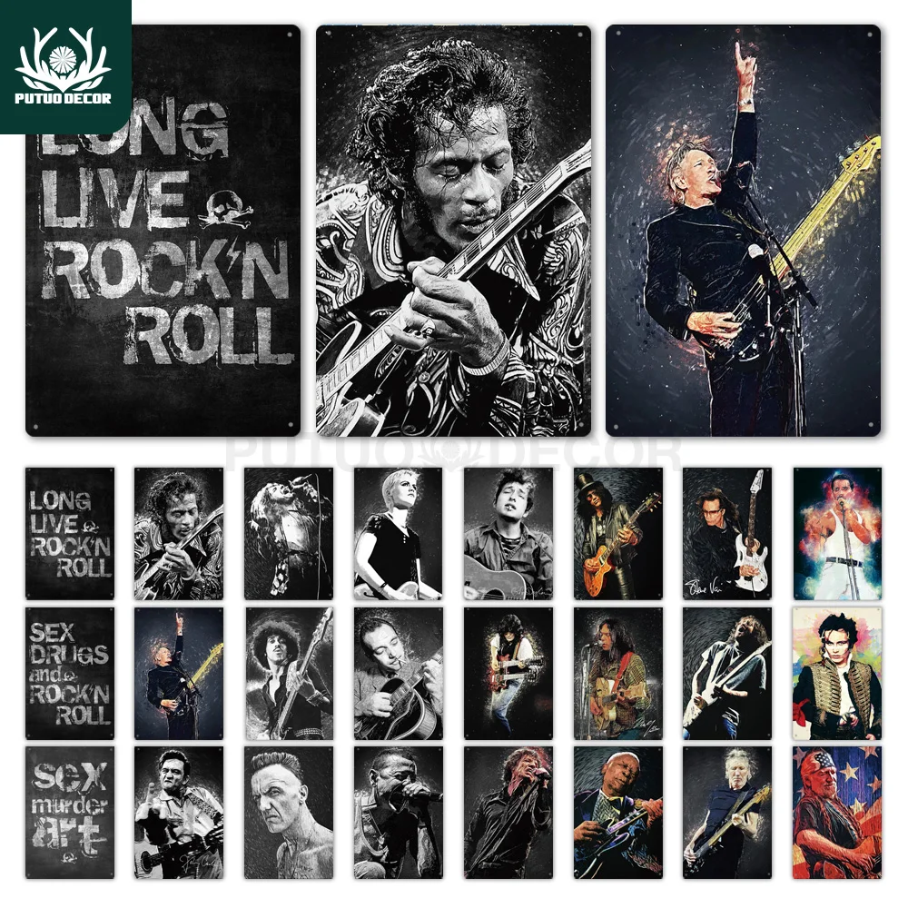 Металлический постер Putuo Decor Rock Roll, винтажный жестяной плакат, металлическая настенная декоративная тарелка для гостиной, мужской пещеры, клуба