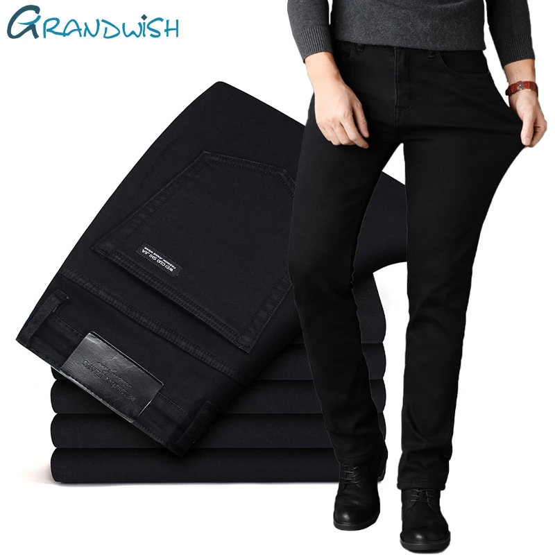 Grandwish Новинка 2021 мужские Стрейчевые классические черные джинсы деловой Повседневный Классический стиль модные джинсовые брюки мужские Брендовые брюки; ZA461