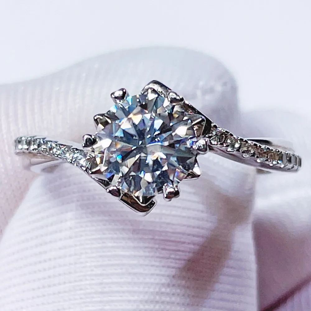 Кольца 100% с муассанитом 5-8 мм, 0,5-2 карата для женщин и девушек, Нерегулируемые, из серебра 925 пробы, Муассанит, бриллиант, круглая огранка