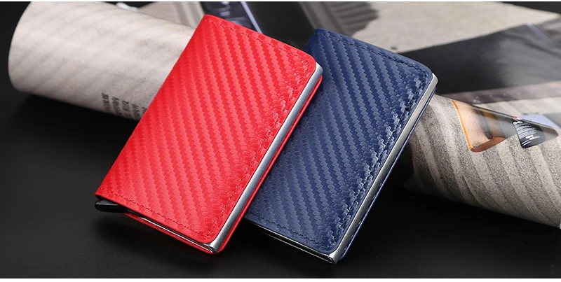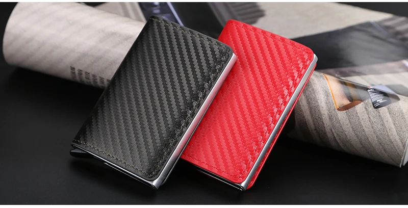 Кожаный чехол с рчид-блокировкой для мужчин и женщин, кредитница из углеродного волокна с кошелёк для банковских карт, защитный кошелек для кредитных карт