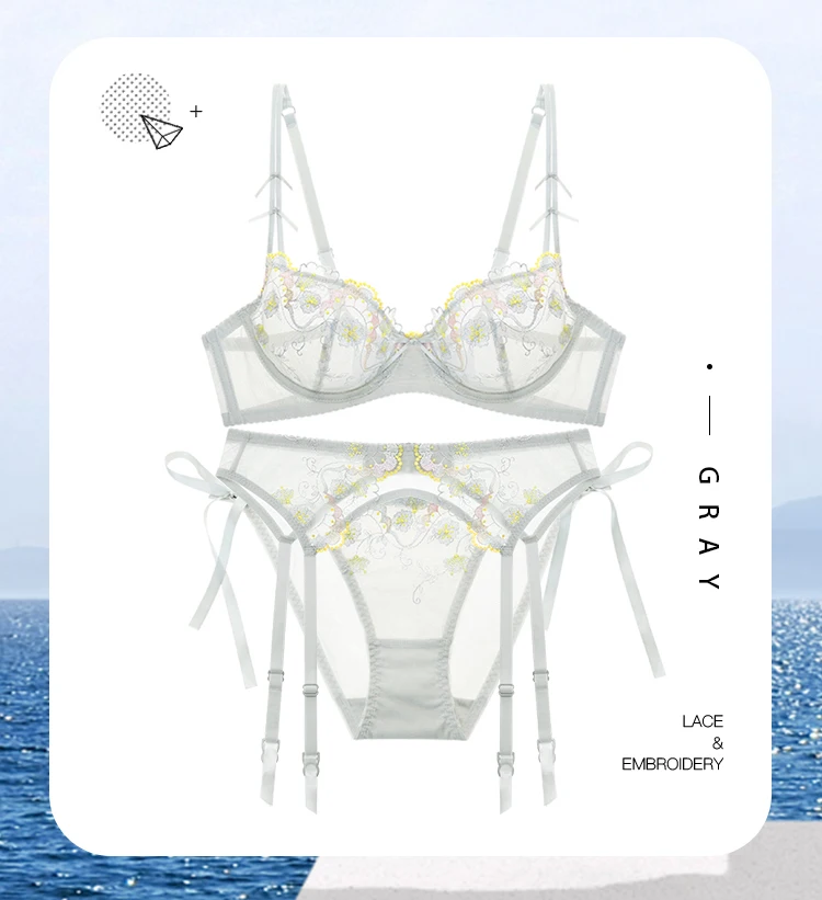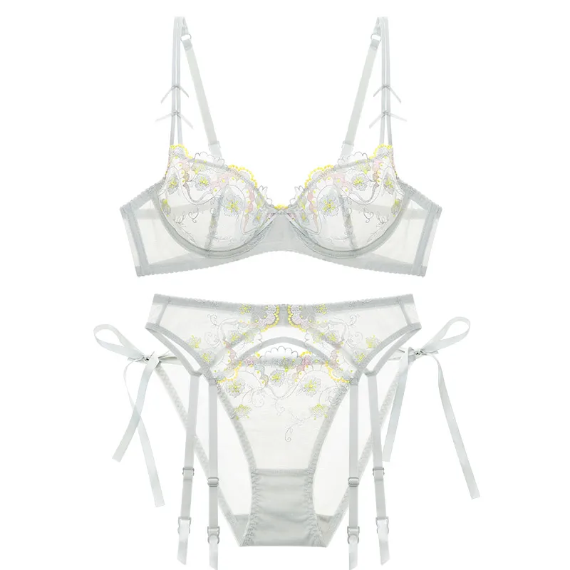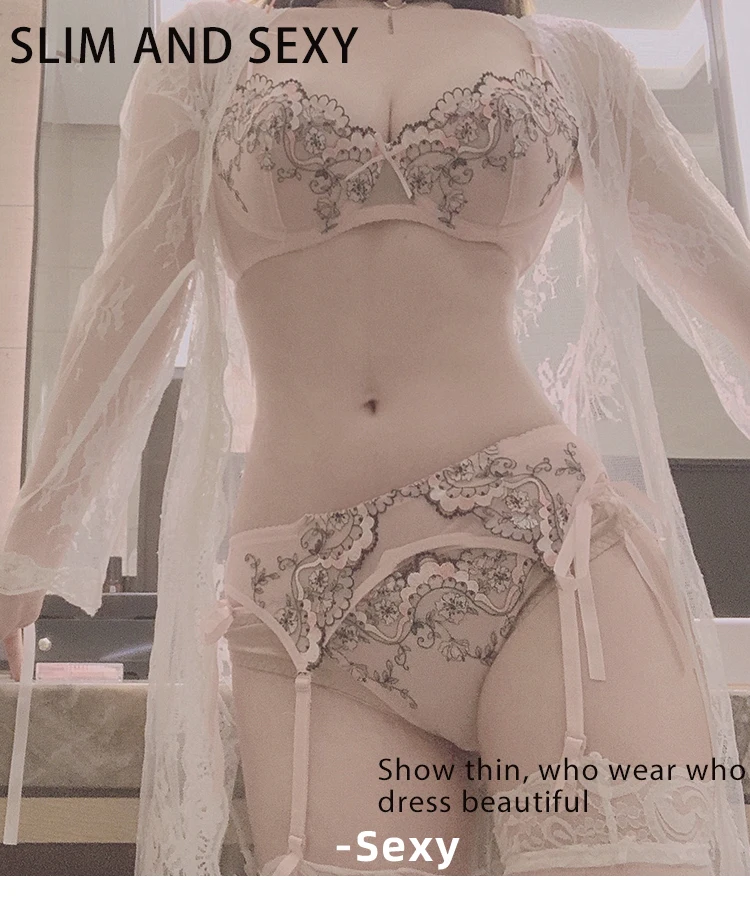 Комплект женского кружевного нижнего белья, бюстгальтер + трусики + Пояс для чулок