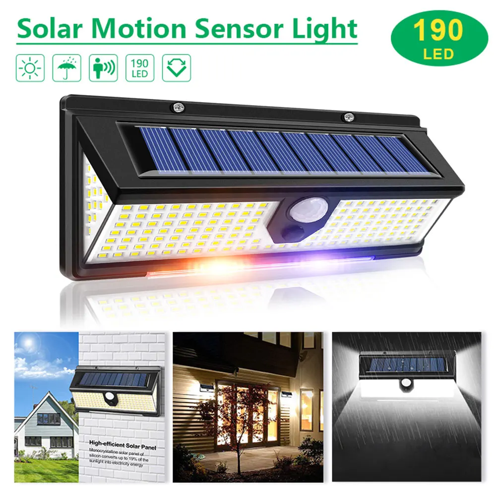 190 светодиодный солнечный свет s уличный солнечный светильник с пассивным инфракрасным датчиком движения, мигающий водонепроницаемый Предупреждение светильник для внутреннего двора, сада