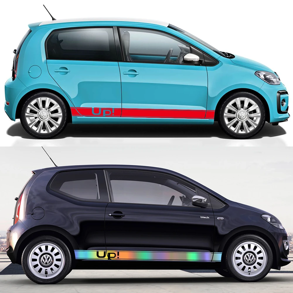 2 шт., наклейки для автомобильной двери, боковые полосы, юбки, графические наклейки для Volkswagen VW UP, авто Декор, обертывания, виниловая пленка, автомобильные аксессуары