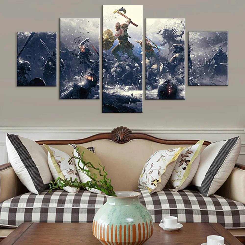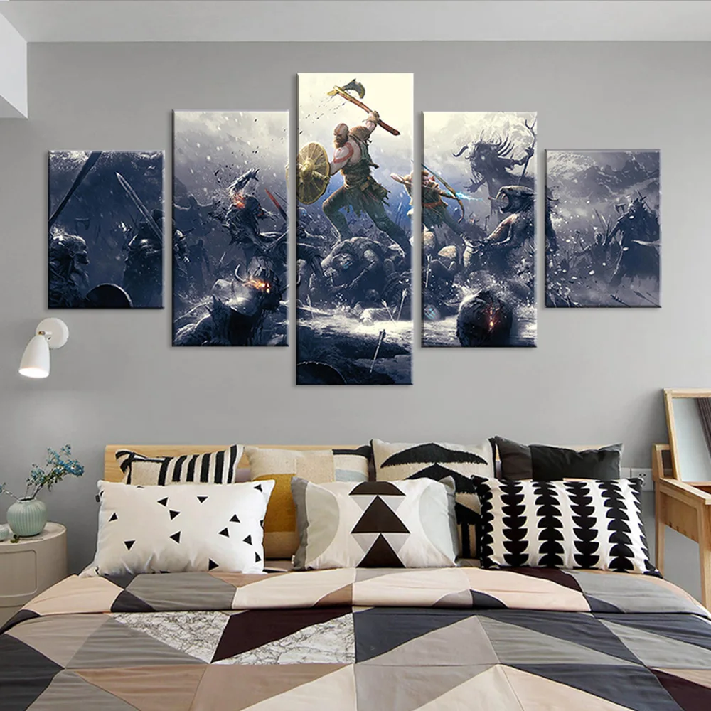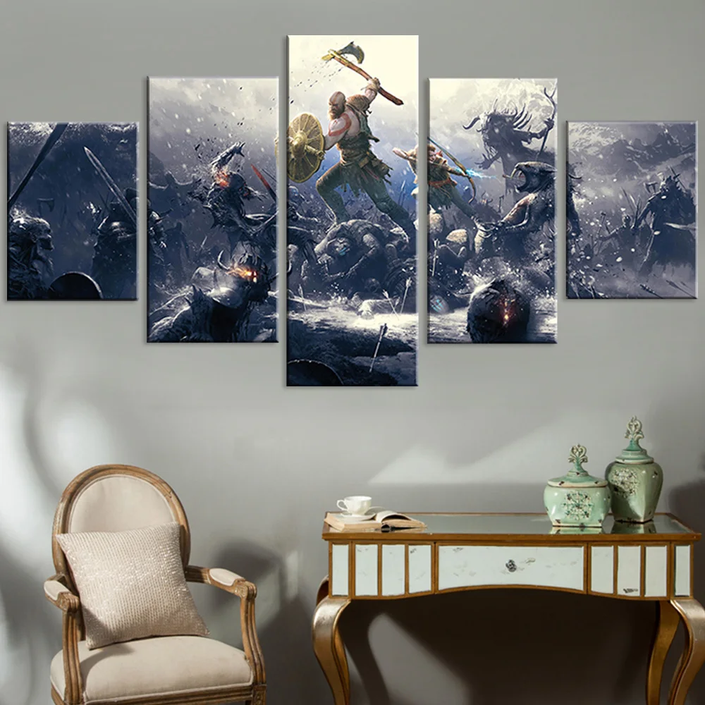Настенное искусство модульные картины на холсте 5 панелей Kratos God Of War Game Декор для дома плакаты картина для гостиной каркас