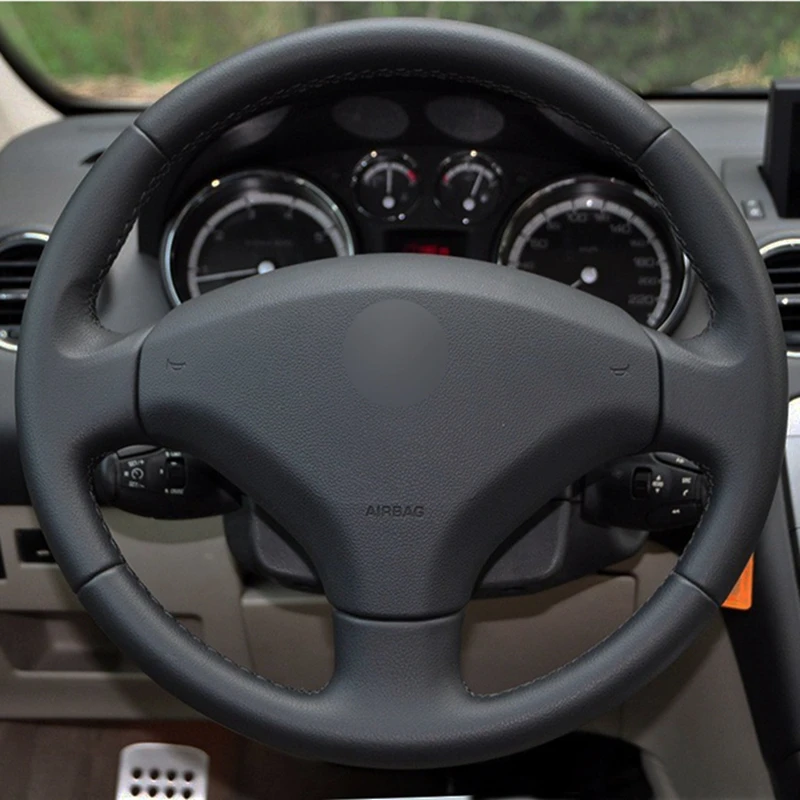 Мягкая черная натуральная кожа, замша Чехлы рулевого колеса автомобиля для Peugeot 308, 2007, 2008, 2009, 2010, 2011, 2012, 2013, 408, 2012-2014