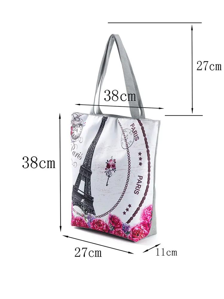 Модные художественные трендовые Женские сумки в стиле Парижской башни, многоразовая Льняная сумка с принтом, открытые карманы, Цветочная сумка для покупок, универсальная