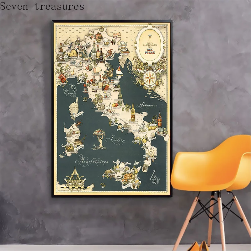 Винтажная карта Италии карты приключений еды Европейская ретро Картина на холсте крафт Декор для комнаты плакаты настенные наклейки