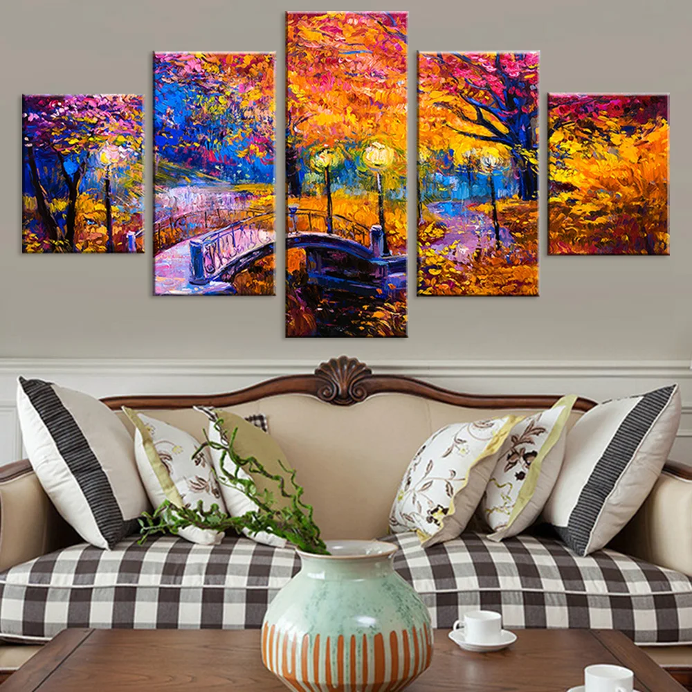 HD печатная рамка домашний декор плакат Современная 5 панельных цветов абстрактный парк ночного вида мост для Гостиной картины настенная живопись