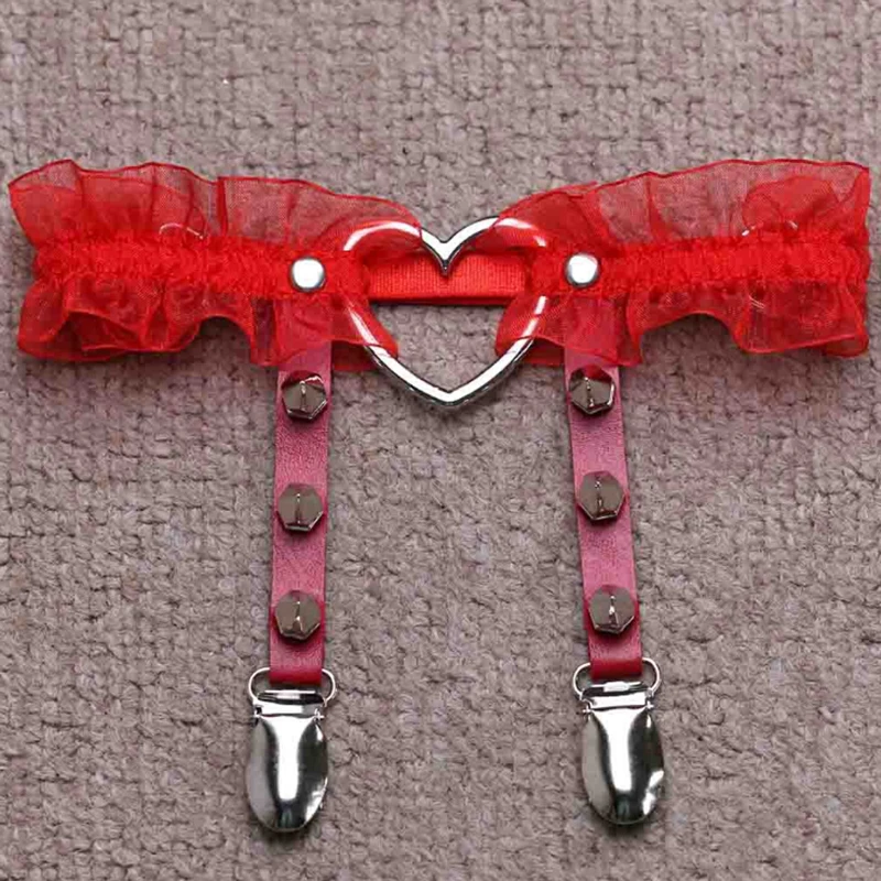Пояс для чулок Harajuku, из искусственной кожи, эластичный, с сердц...