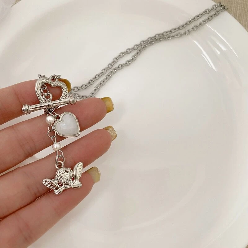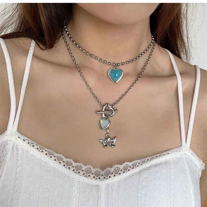 Женское Ожерелье-чокер Kpop из нержавеющей стали, массивное ожерелье в форме сердца в стиле Харадзюку, цепочка в готическом стиле, бижутерия