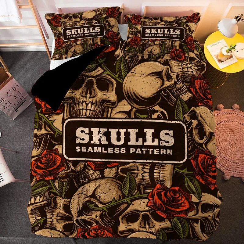Набор постельных принадлежностей с 3D принтом черепа, пододеяльник,...