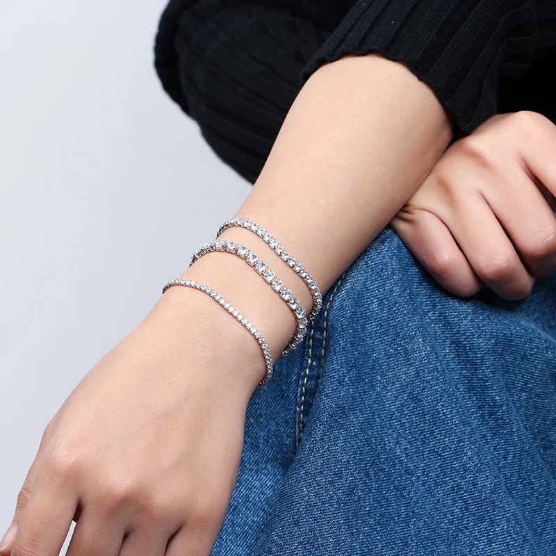 Effie Queen серебряный браслет теннисная цепь 2 мм 3 мм 4 мм циркониевые серебряные браслеты для женщин и мужчин хип-хоп ювелирные изделия BB61