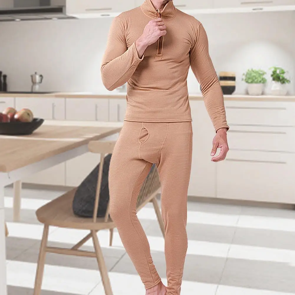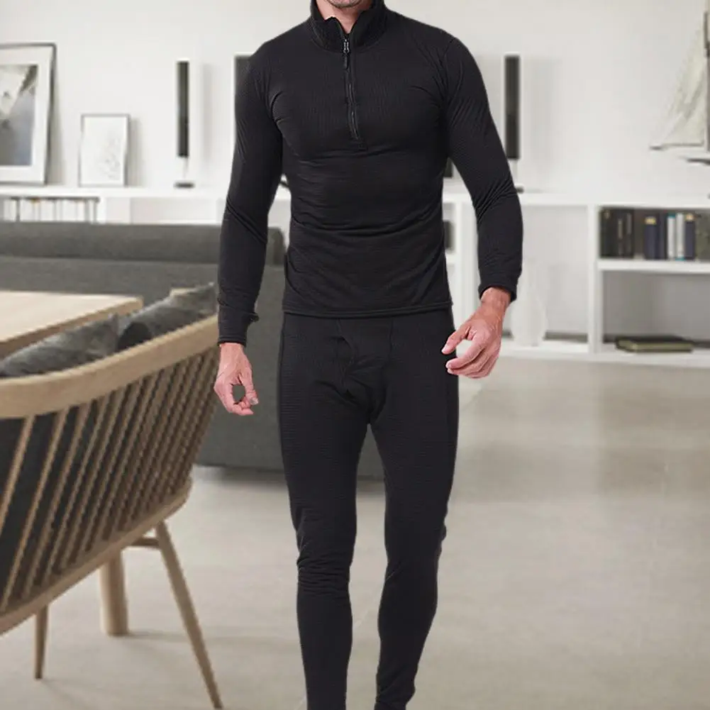 Для мужчин зимняя одежда с длинным рукавом на молнии Топ и штаны узкие Термальность комплект нижнего белья теплая одежда