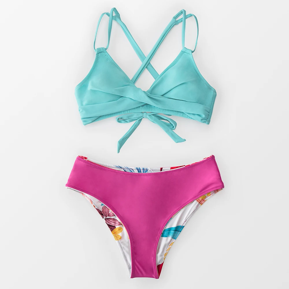 Купальник-Бикини на шнуровке с заниженной талией и цветочным принтом