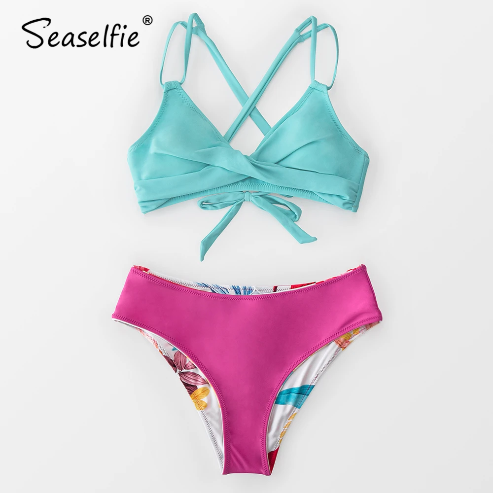 SEASELFIE сексуальные комплекты бикини с высокой талией с перекруче...