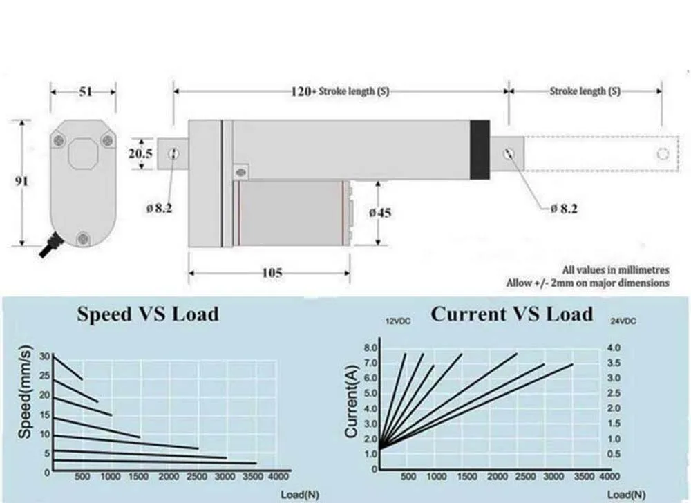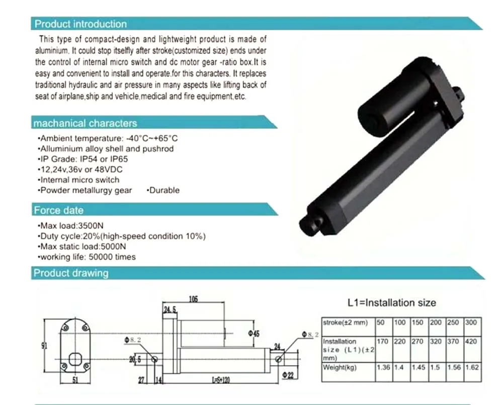 12 В24 В постоянного тока 1000 мм регулируемый ход тяжелый 500N-3500N линейный привод для двери окна или кровати