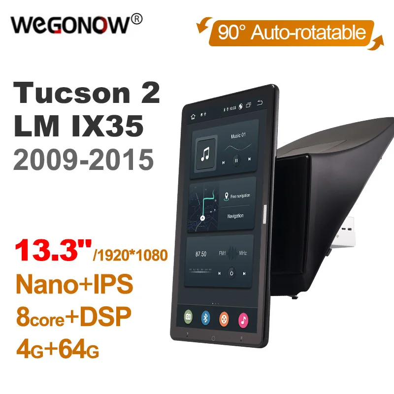 Автомобильный DVD-плеер Tesla Style 13,3 дюйма PX6 Android 10, автомобильный вращающийся навигатор GPS для Hyundai Tucson LM IX35 2009-2015, автомобильное радио