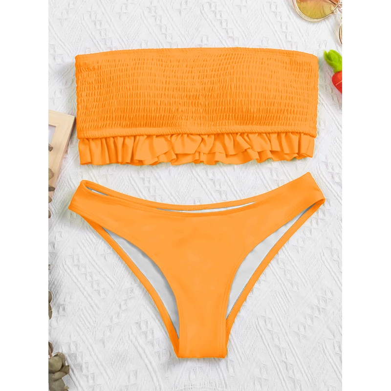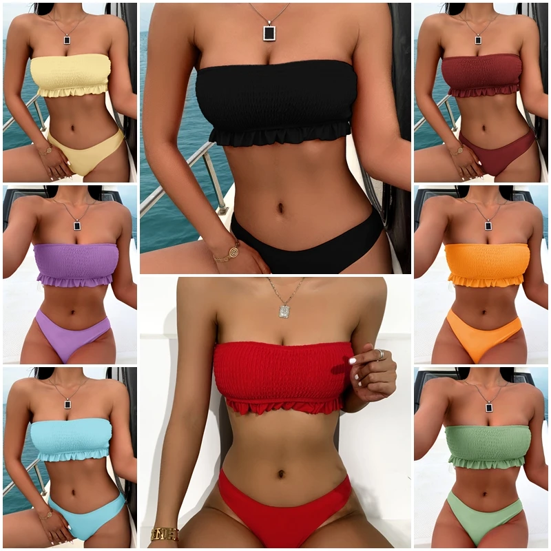 Сексуальное бикини с оборками 2022, купальник-бандо, женский купаль...