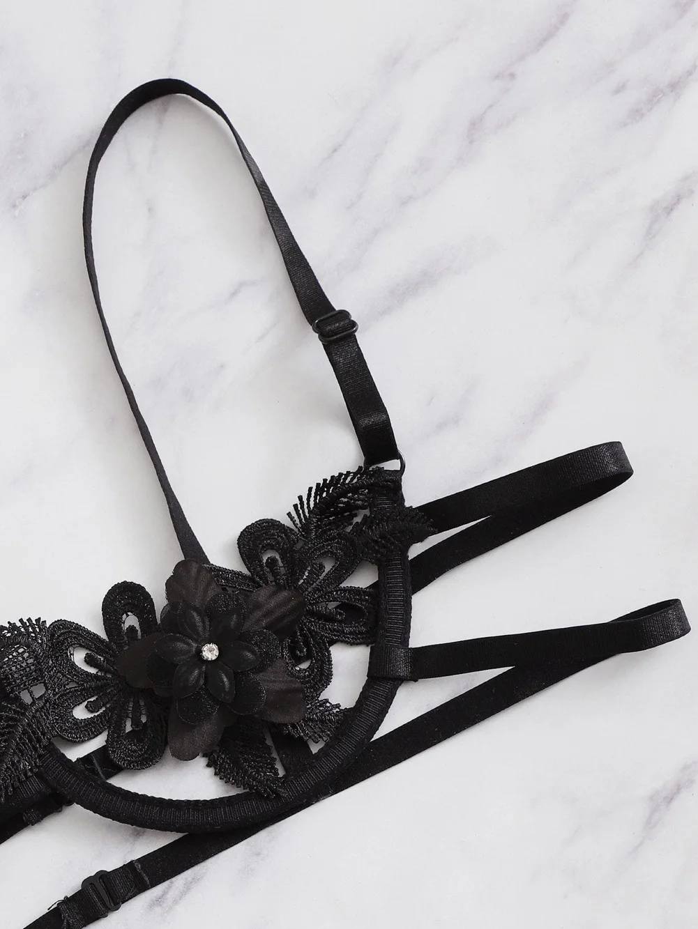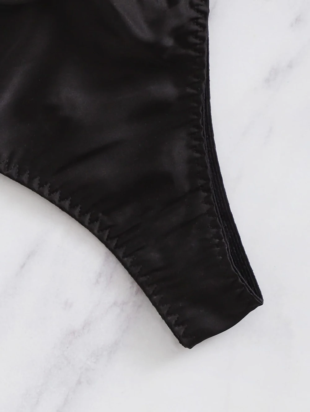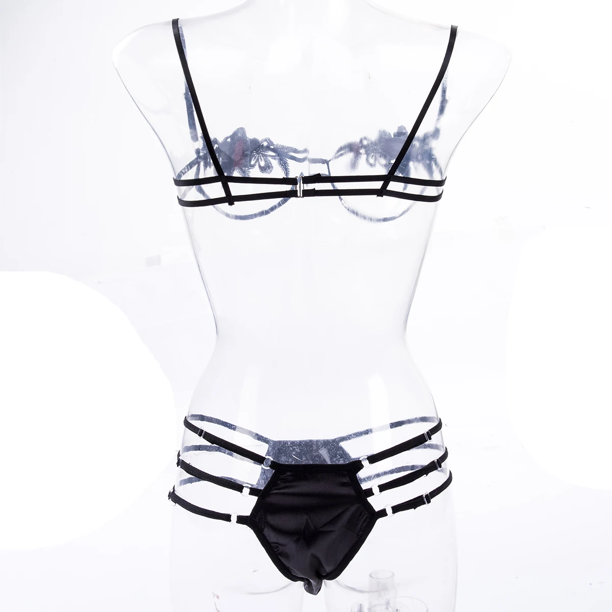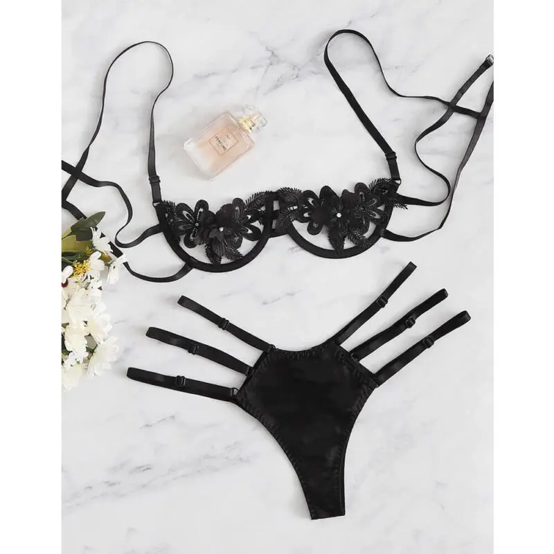 Комплект нижнего белья женский, кружевной Атласный топ с цветочным принтом, стринги, сексуальное экзотическое женское белье
