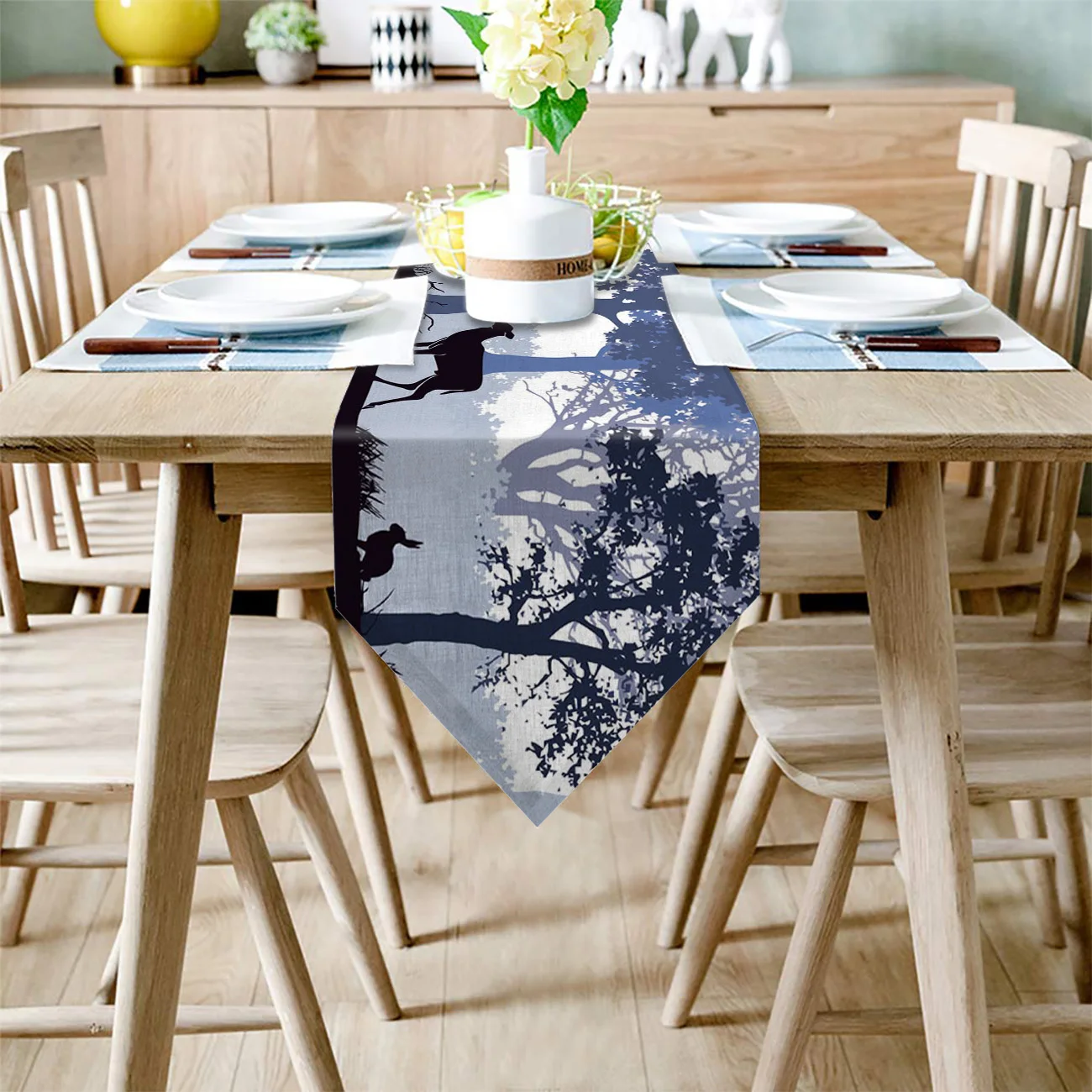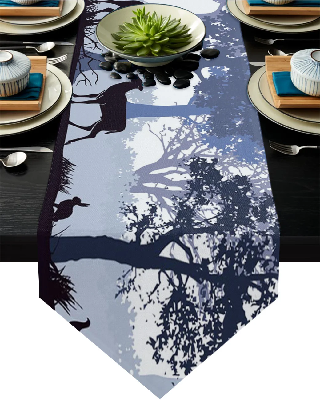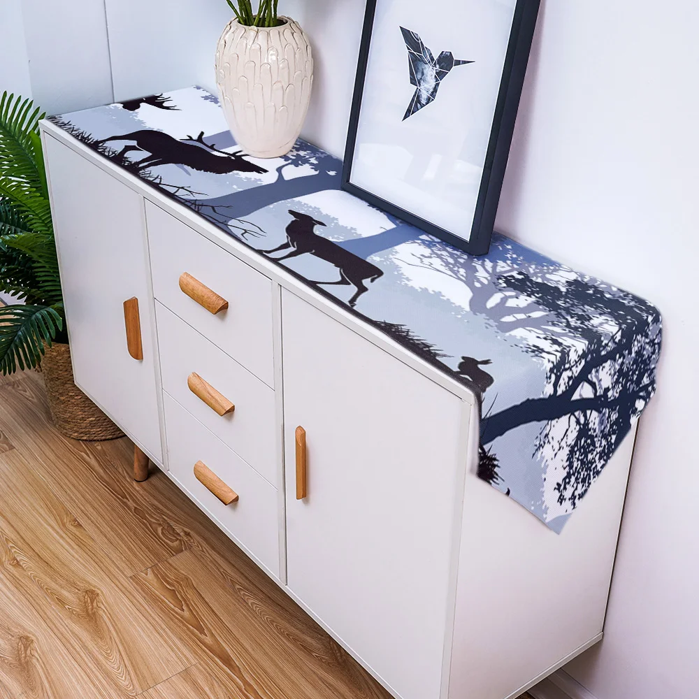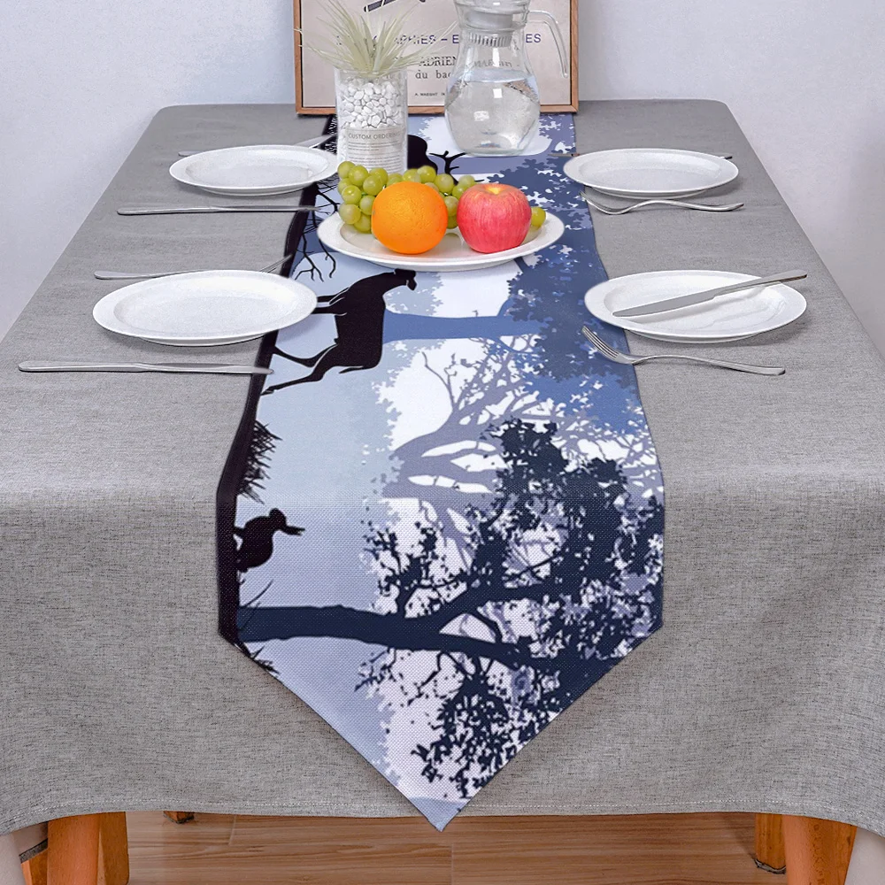 Настольная дорожка с изображением животных, оленя, леса, черного кролика, современная настольная дорожка для дома, скатерть для свадебной вечеринки, аксессуары для украшения стола