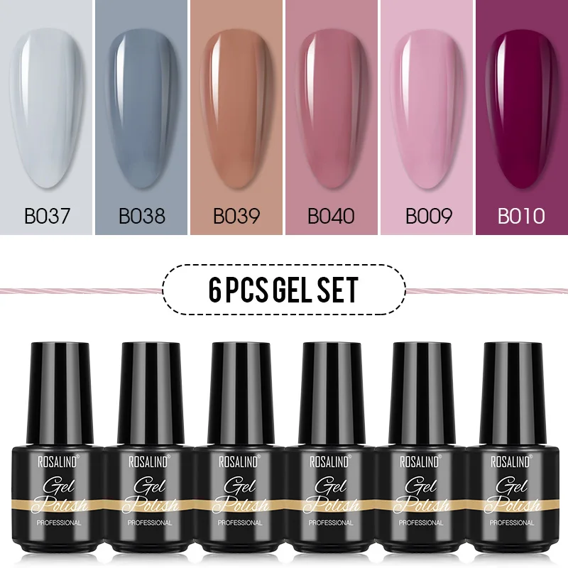 ROSALIND 6 шт./набор гель-лаков набор маникюрный дизайн ногтей отмачиваемый полуперманентный гель лак нужен Базовый Топ грунтовка Gellak