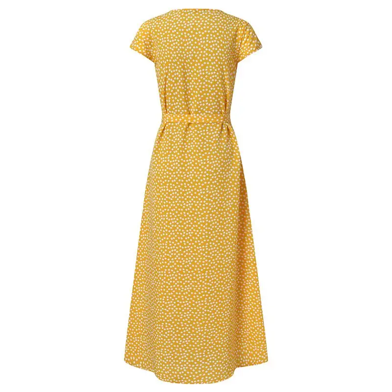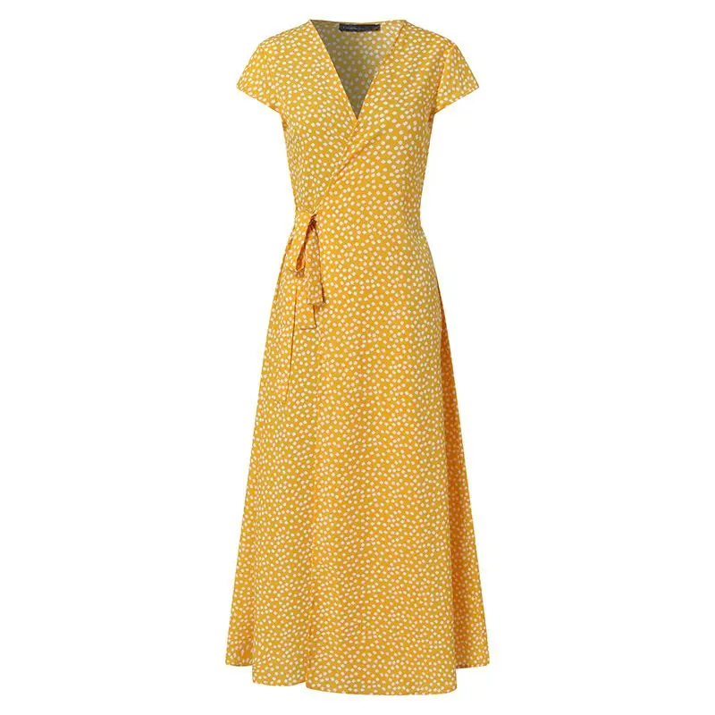 Женское длинное платье-макси с V-образным вырезом, богемный сарафан с цветочным принтом Celmia, летнее Бандажное платье с коротким рукавом и разрезом, 2021