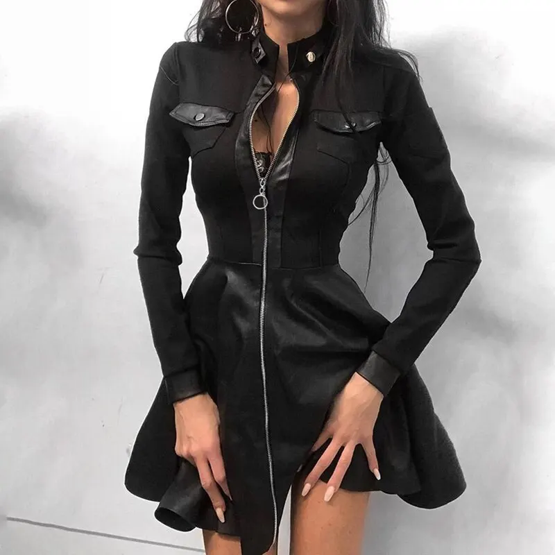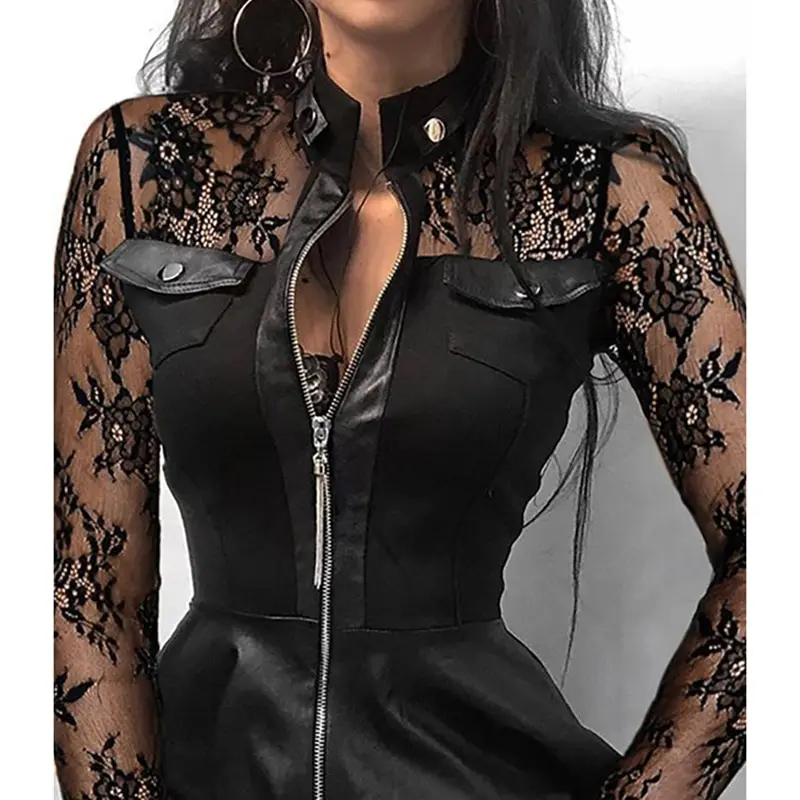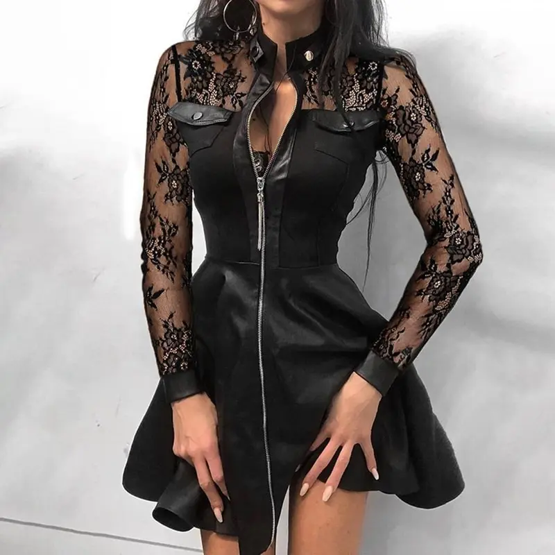 Женское винтажное клетчатое облегающее мини-платье на молнии, Осеннее кружеввечерние лоскутное праздничное платье с длинным рукавом, офисное Привлекательное платье, платье 2021