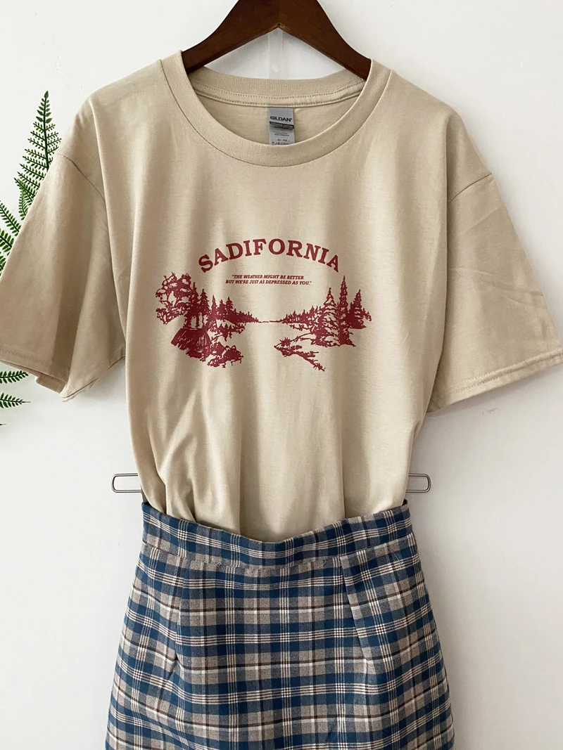 Sunfiz YF Sadifornia женская футболка 2020 летние уличные Топы Футболка с забавной надписью женская футболка с круглым вырезом