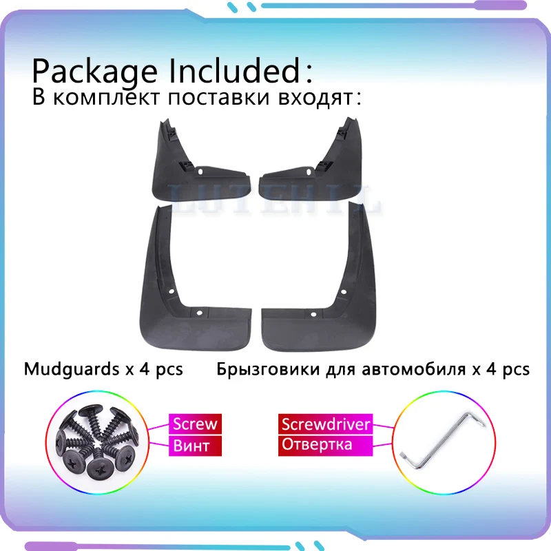 4 x брызговика, 1 x отвертка, сумка для фиксации винтов