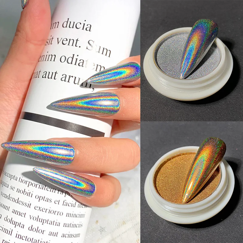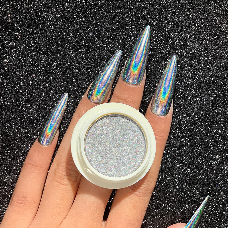 1 коробка Серебряный Радужный Блестящий Порошок для ногтей градиент...