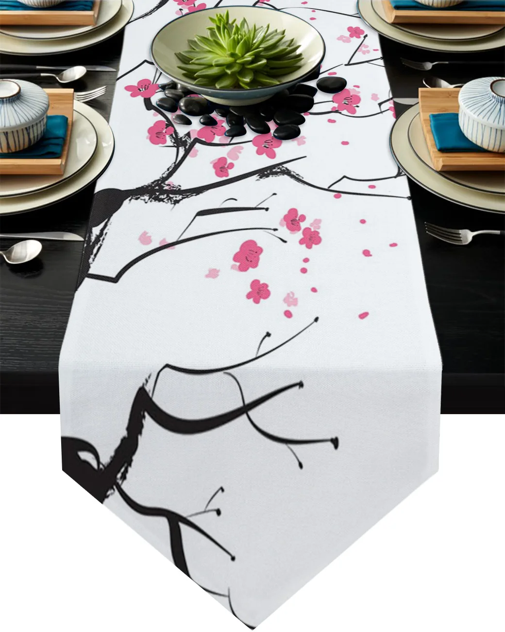 Красная Цветущая слива, чернильная живопись, Настольная дорожка, Современная для дома, скатерть для стола, аксессуары для украшения стола на свадьбу, вечеринку